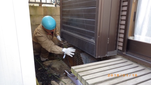 足跡や糞などから侵入経路、侵入口を確定させます。