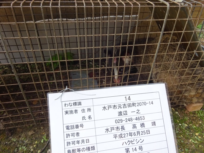 ハクビシン アライグマ 駆除 守谷市 役所に申請し、正規の駆除を行うので安心 たいじ屋
