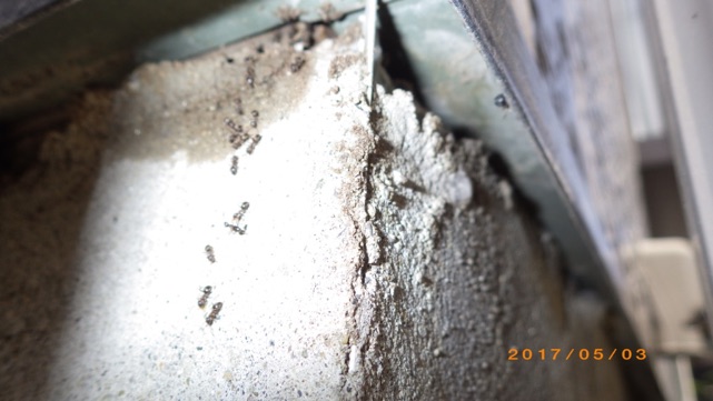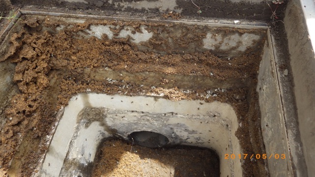 2重構造の雨水マスに営巣を確認 薬剤にて処理します