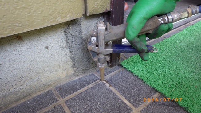 タイルの下に薬剤を注入します
