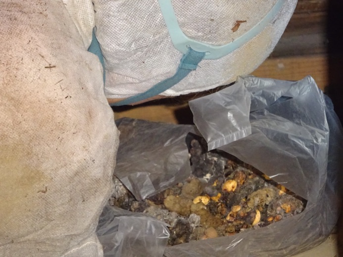 この様に、屋根に溜糞をし、悪臭やハエ