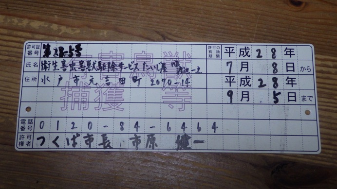 ハクビシン アライグマ 駆除 つくば市 役所に申請し、正規の駆除を行うので安心 たいじ屋